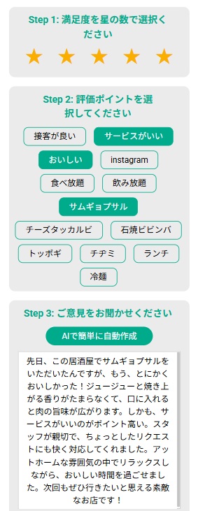 口コミが面倒だという方でも1分で投稿が完了しますので、口コミ増加につながります。